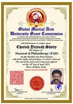 Renowned Martial Arts Guru Cheetah Yajnesh Shetty Receives Phd Degree From Global Martial Arts University Grant Commission