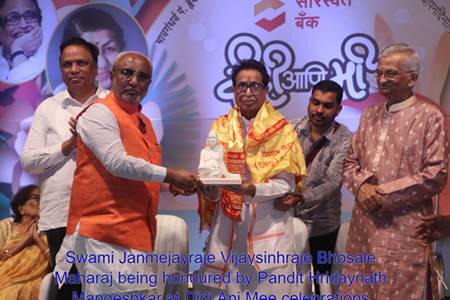 Then came a moment of quiet grace. Swami Janmejayraje Vijaysinhraje Bhosale Maharaj, head of the royal house of Akkalkot, rose and said softly, “To be present here today is a blessing. To receive the affection and ashirwad of such an illustrious family like the Mangeshkars is my honour.” It was not a blessing offered — it was respect returned.